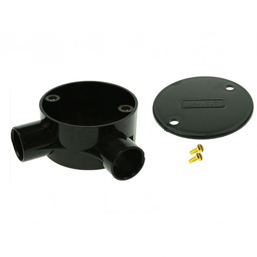 Univolt Black Tee Conduit Junction Box 20mm Including Lid & Screws